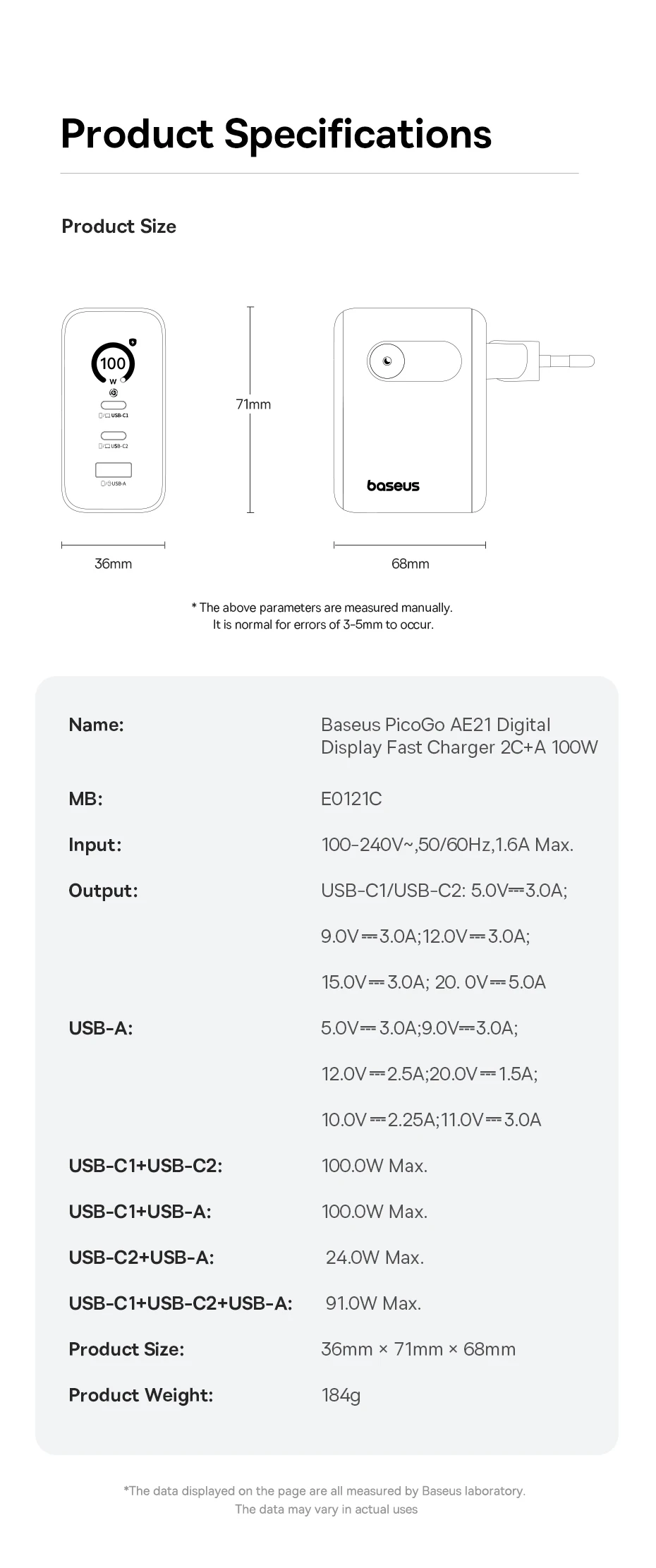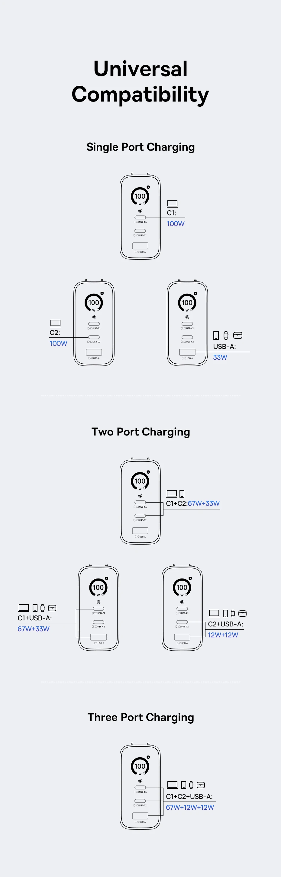 1. 100W 2C+U GaN Charger
