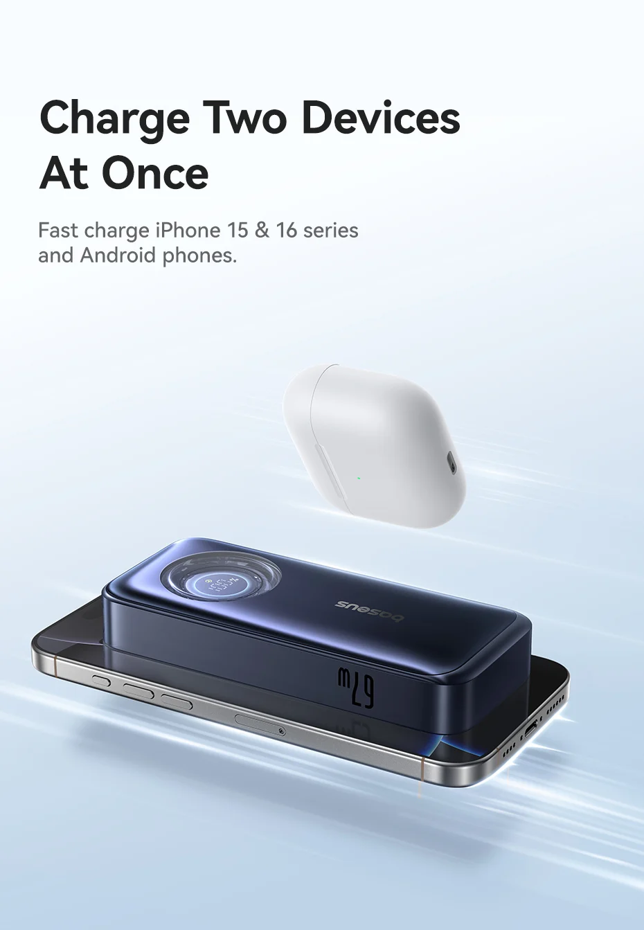 Fast charge iPhone series and Android phones.