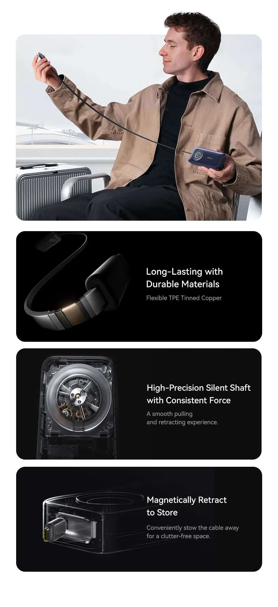 3. Magnetically Retract to Store: Conveniently stow the cable away for a clutter-free space.