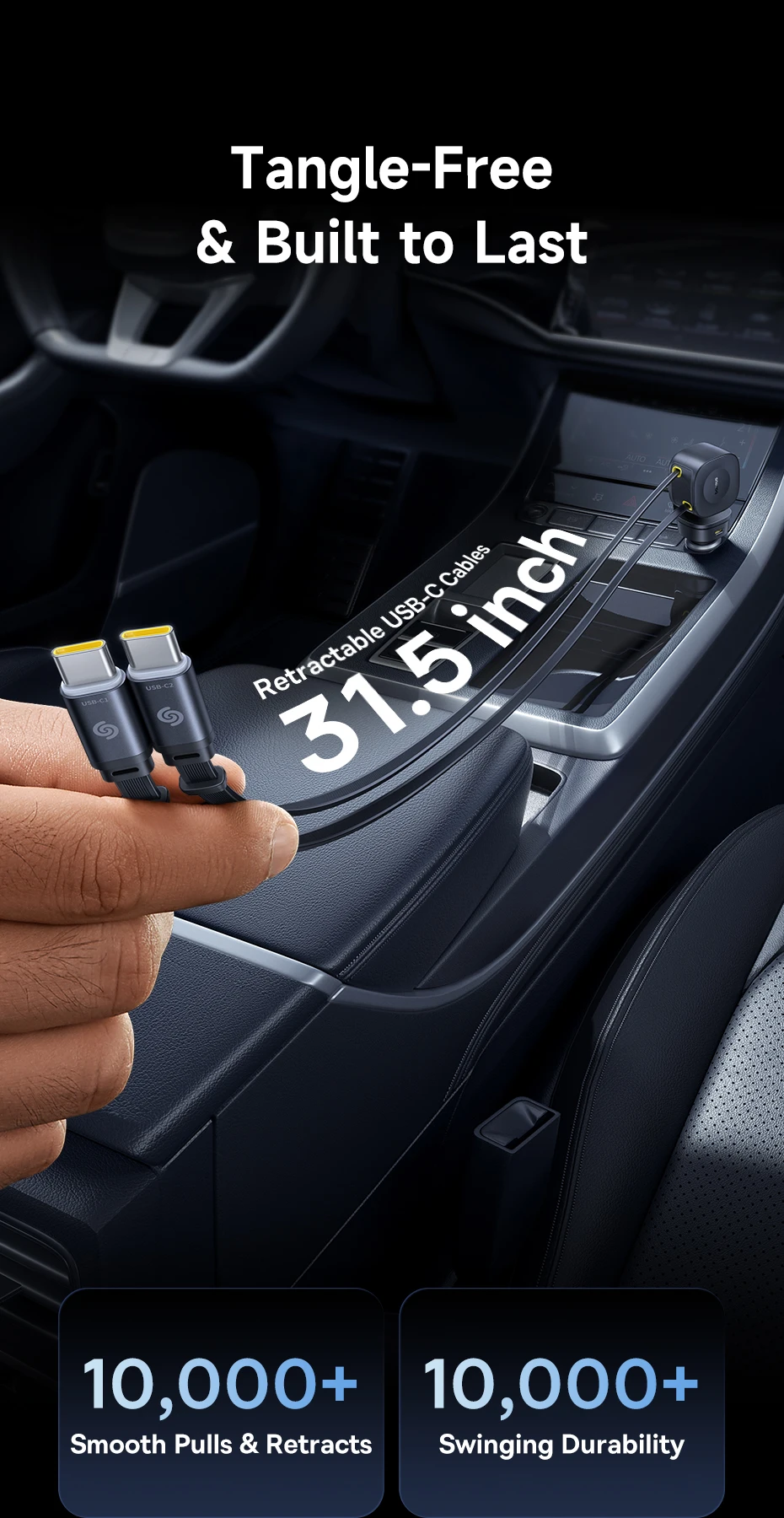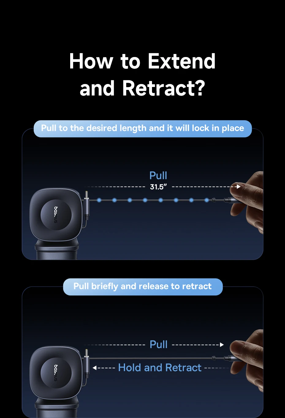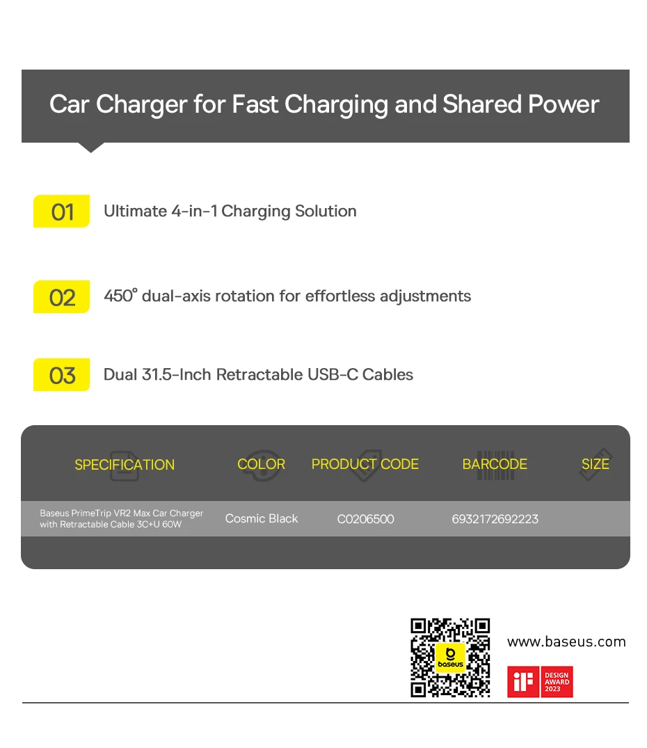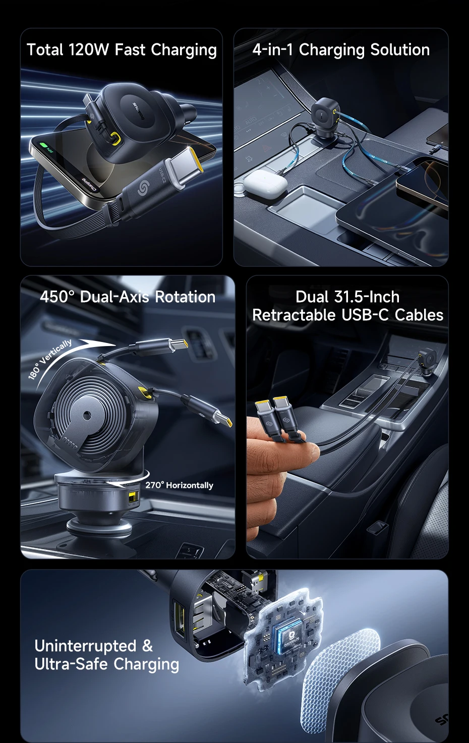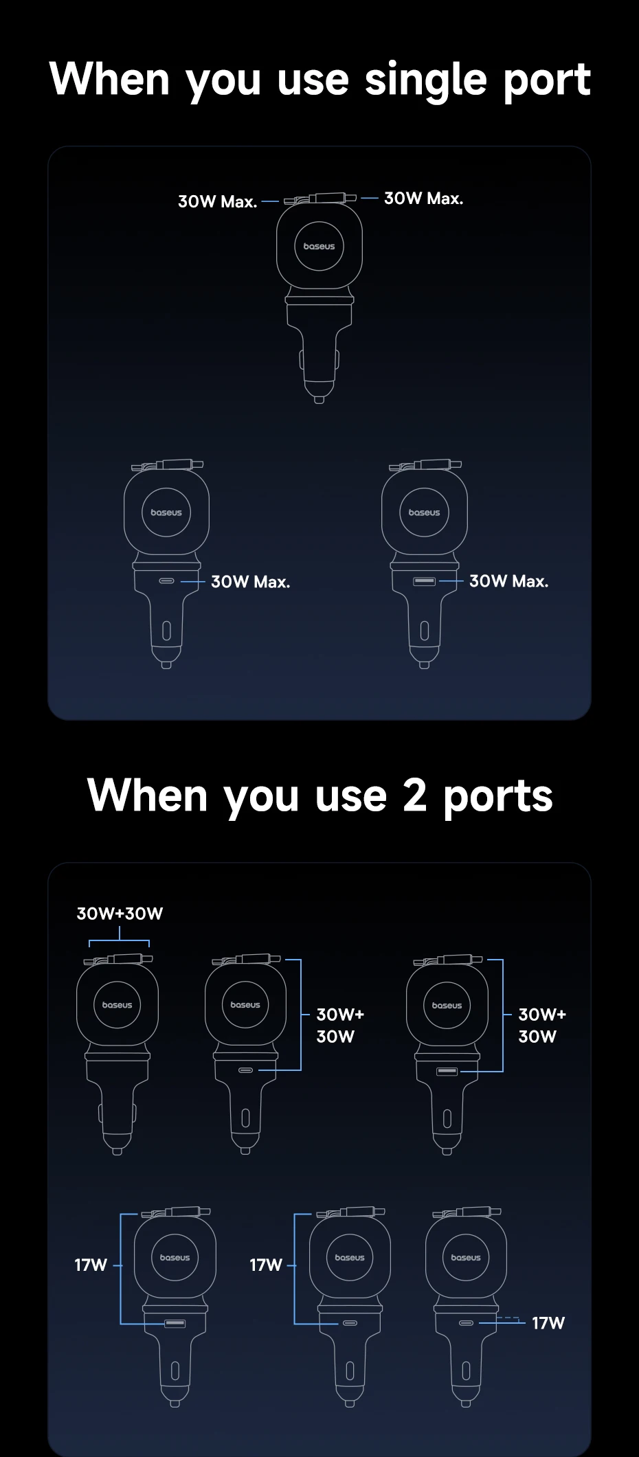 Baseus 60W Car Charger 2 in 1 Retractable Cable SCP 25W QC PD 30W Fast Car Phone Charger For iPad iPhone 16 15 14 13 Pro Samsung