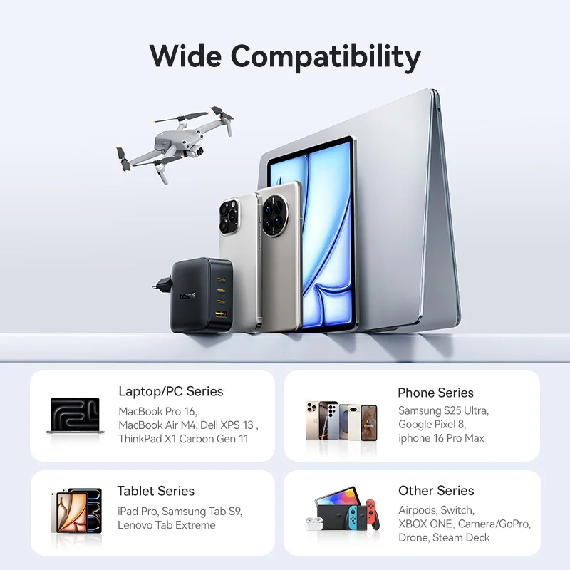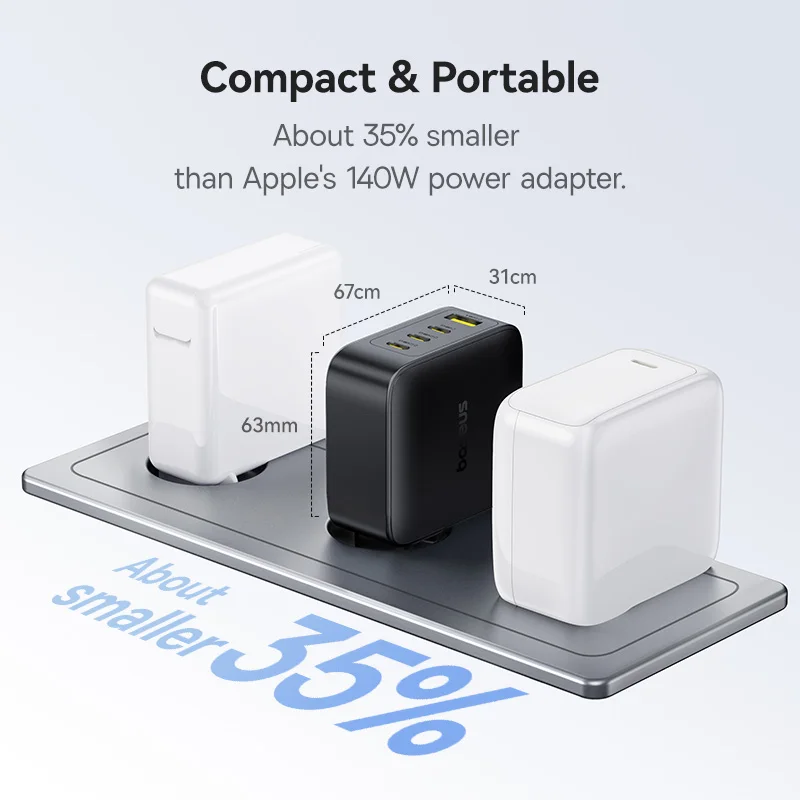 The Baseus Enerfill 140W GaN Charger offers exceptional charging speed and compatibility with various devices.